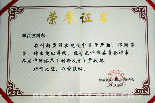 我校副校长辛洪波教授荣获“中国侨界(创新人才)贡献奖”